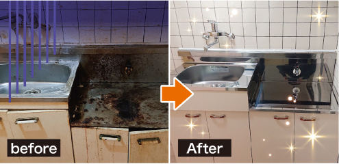 キッチン周り、水周りなどお部屋のすみずみまで徹底気に汚れを落とします。